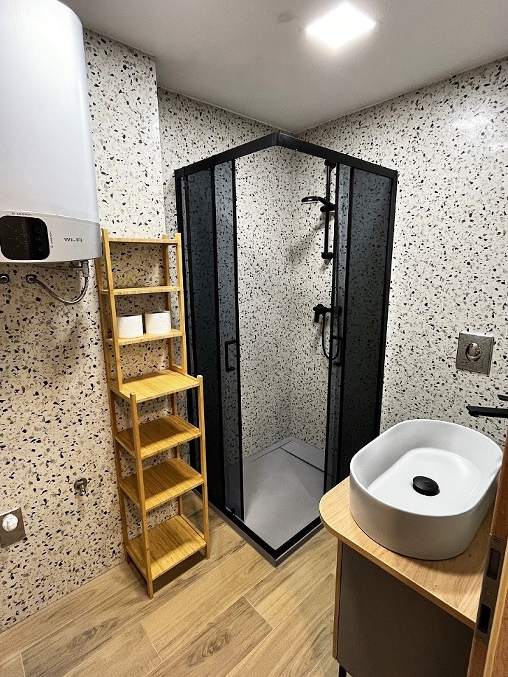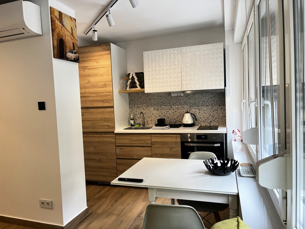 - Nova kuhinja s ugrađenim aparatima: perilica posuđa, hladnjak, pećnica, indukcijska ploča i napa.