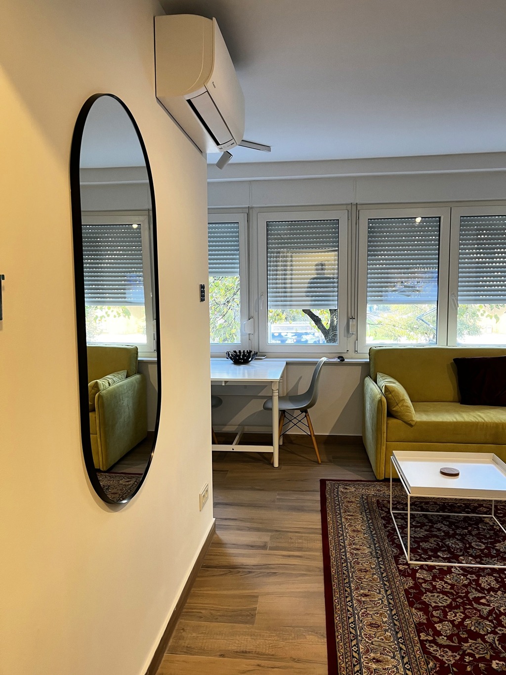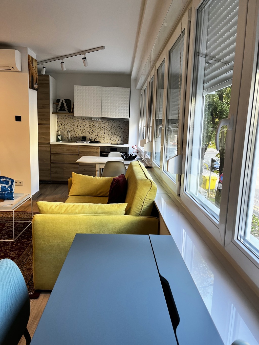 Na odličnoj lokaciji u neposrednoj blizini hotela Westin prodaje se potpuno renoviran stan površine 30 m². Smješten je na prvom katu zgrade iz 1965. godine, koja ima lift te omogućuje beskontaktni ulaz u zgradu i stan.